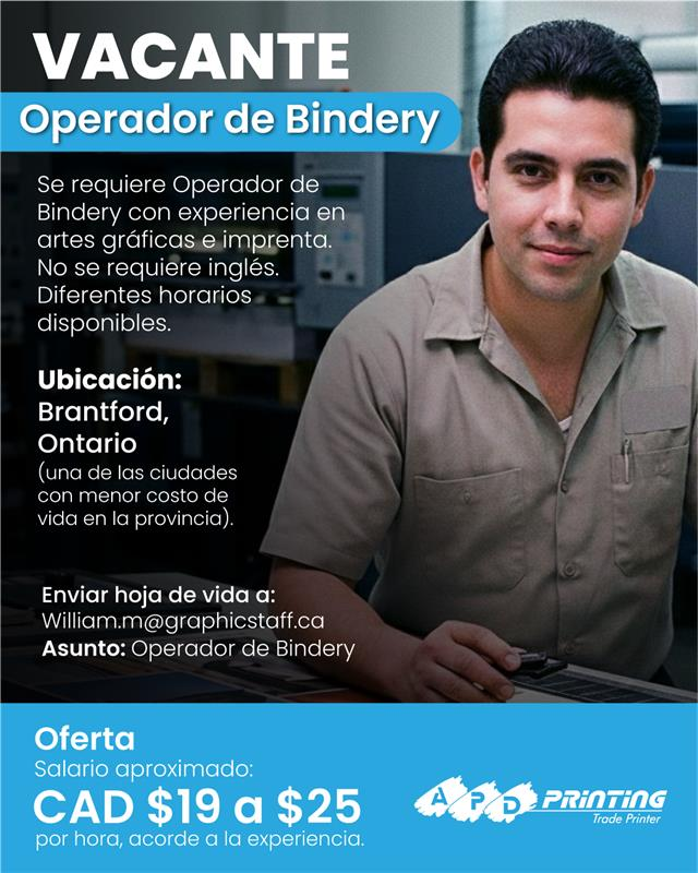 Se solicita Operador de Bindery