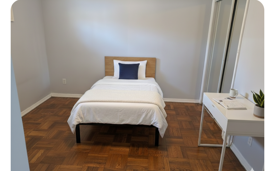 $800/mes, un cuarto en la zona de Dufferin y Rogers Rd. El cuarto es partialmente amoblado con cama y closet. Cosina y baño compartido. Unicamente ll (...)